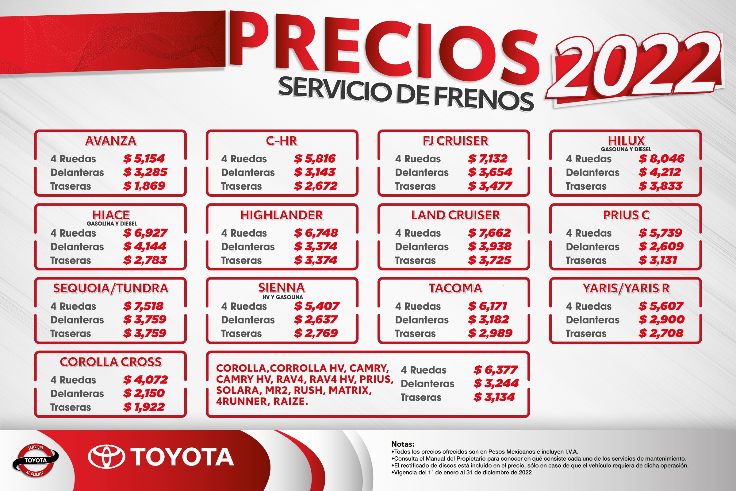 El personal del área de servicio, como son los asesores y el equipo técnico de cada uno de los Distribuidores cuenta con los recursos técnicos y conocimientos necesarios para atender tus necesidades y mantener en buen estado cada uno de los vehículos Toyota.